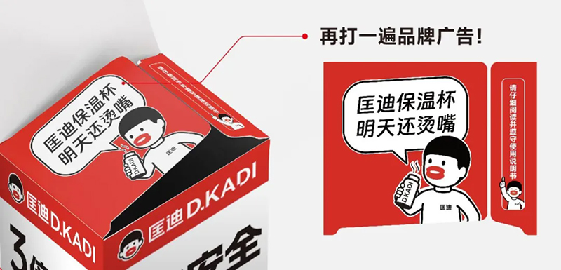 這句話一方面運(yùn)用了人類(lèi)集體的經(jīng)驗(yàn)和潛意識(shí),另一方面,把原本負(fù)面的“燙嘴”,變成了正向的宣傳,來(lái)證明匡迪保溫杯的品質(zhì),傳播我們的品牌名。