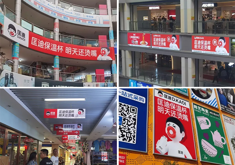 不止如此,我們還圍繞門(mén)店,在批發(fā)市場(chǎng)周邊投放了商圈廣告,甚至打造了“品牌打卡墻”,讓匡迪的形象低成本地“無(wú)處不在”。